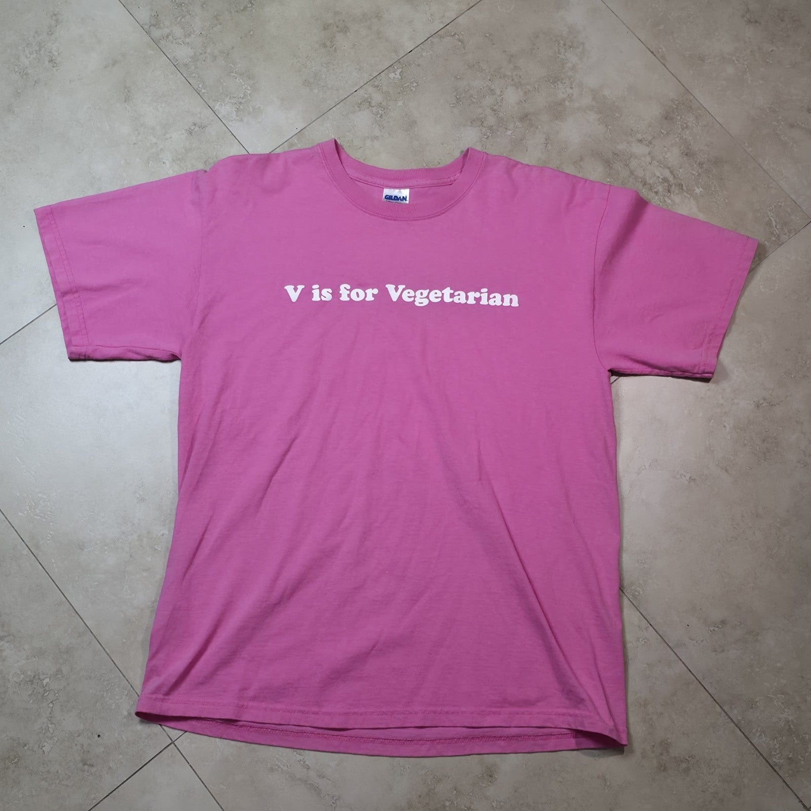 Vintage V for Vegetarian Shirt Men’s Large Pink Graphic Slogan Tee Y2K Vegan