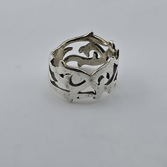 Sterling Silver 925 Openwork Scroll Ring Size 9 Wide Band Gothic Vintage