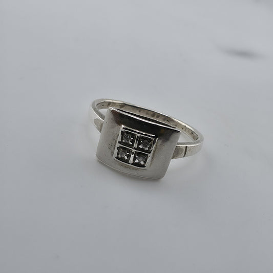 Sterling Silver 925 Square CZ Cluster Ring Size 7.5 Vintage Minimalist 4 Stone