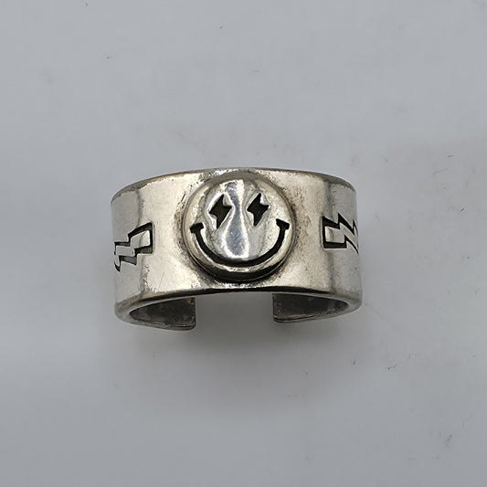 Sterling Silver 925 Smiley Face Ring Size 9 Wide Band Lightning Star Vintage