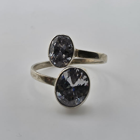 Sterling Silver 925 Large Clear Stone Ring Filigree Heart Vintage Size 7.5