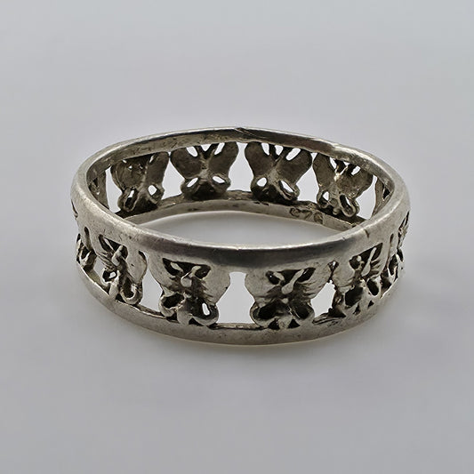 Sterling Silver Rimmed Openwork Butterfly Band Ring 925 Sz: 8