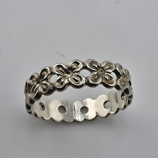 Sterling Silver Flower Band Ring Size 7 Floral Openwork Vintage Stackable 925
